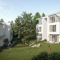 nmitten einer grünen Oase nahe der Alster entsteht ein exklusives Wohnensemble aus sechs modernen Townhäusern. Der Entwurf von HKT Architekten zeichnet sich durch klare Linien, eine durchdachte Raumorganisation über drei Geschosse mit Splitlevel-Struktur und ein harmonisches Zusammenspiel mit der umgebenden Natur aus.
